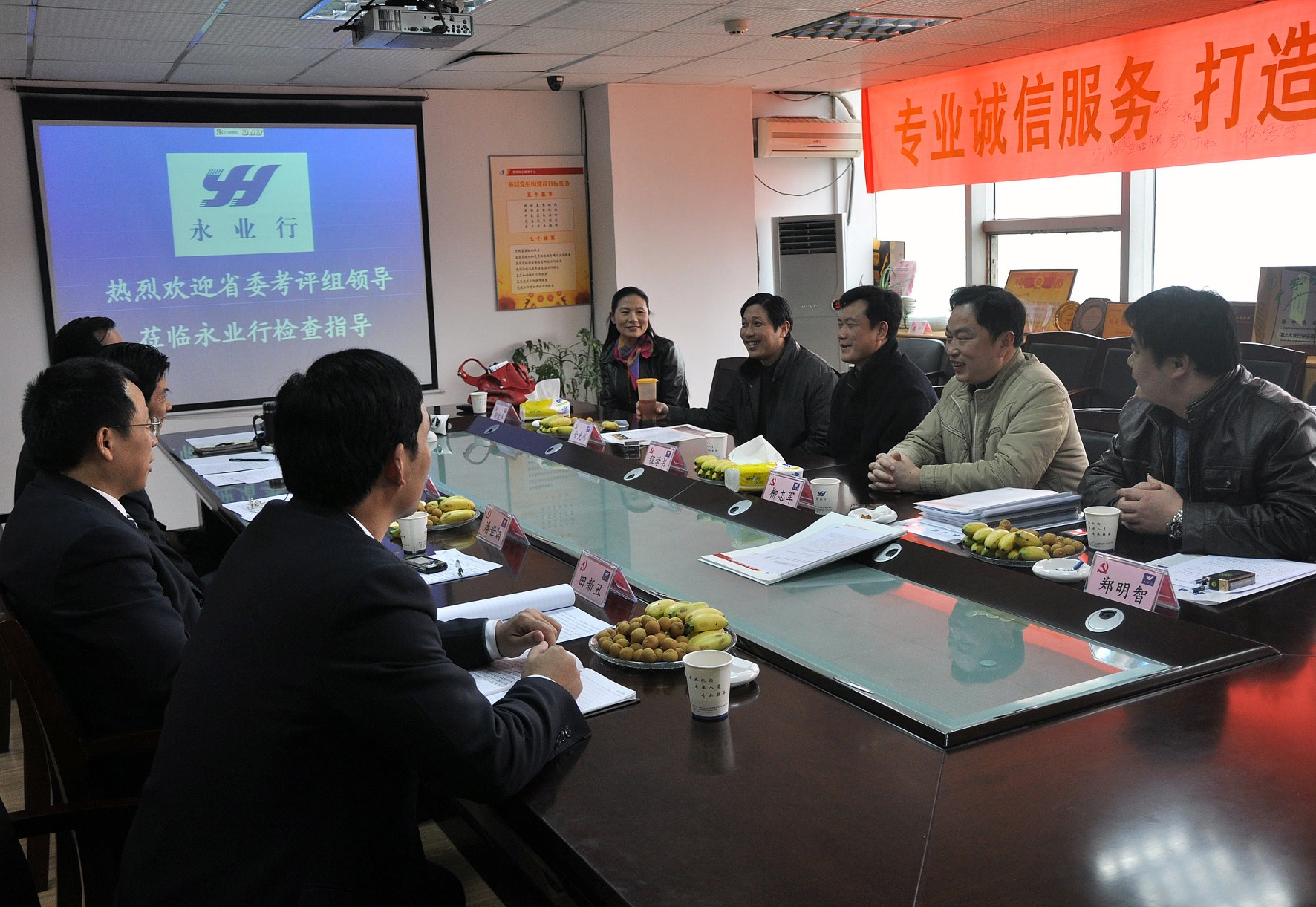2011年3月8日,省委考评组领导莅临永业行检查党建工作