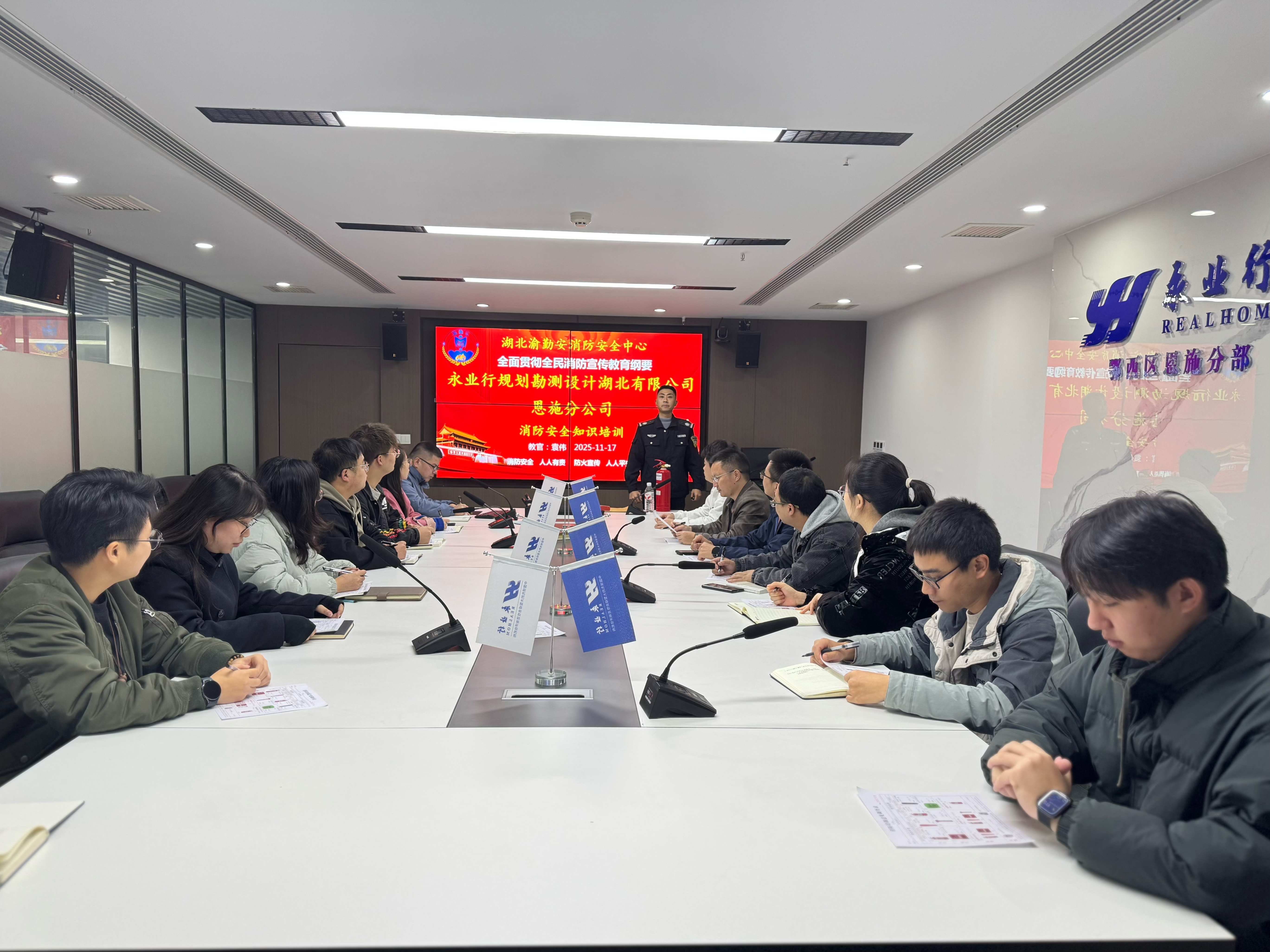 2025年11月17日,正值全国消防宣传月,永业行鄂西区联合恩施州消防中心宣传办开展消防安全知识培训。永业行鄂西区执行总经理杨懿,助理总经理肖泽元、李贵勇及各部门员工线上线下近60余人参加。